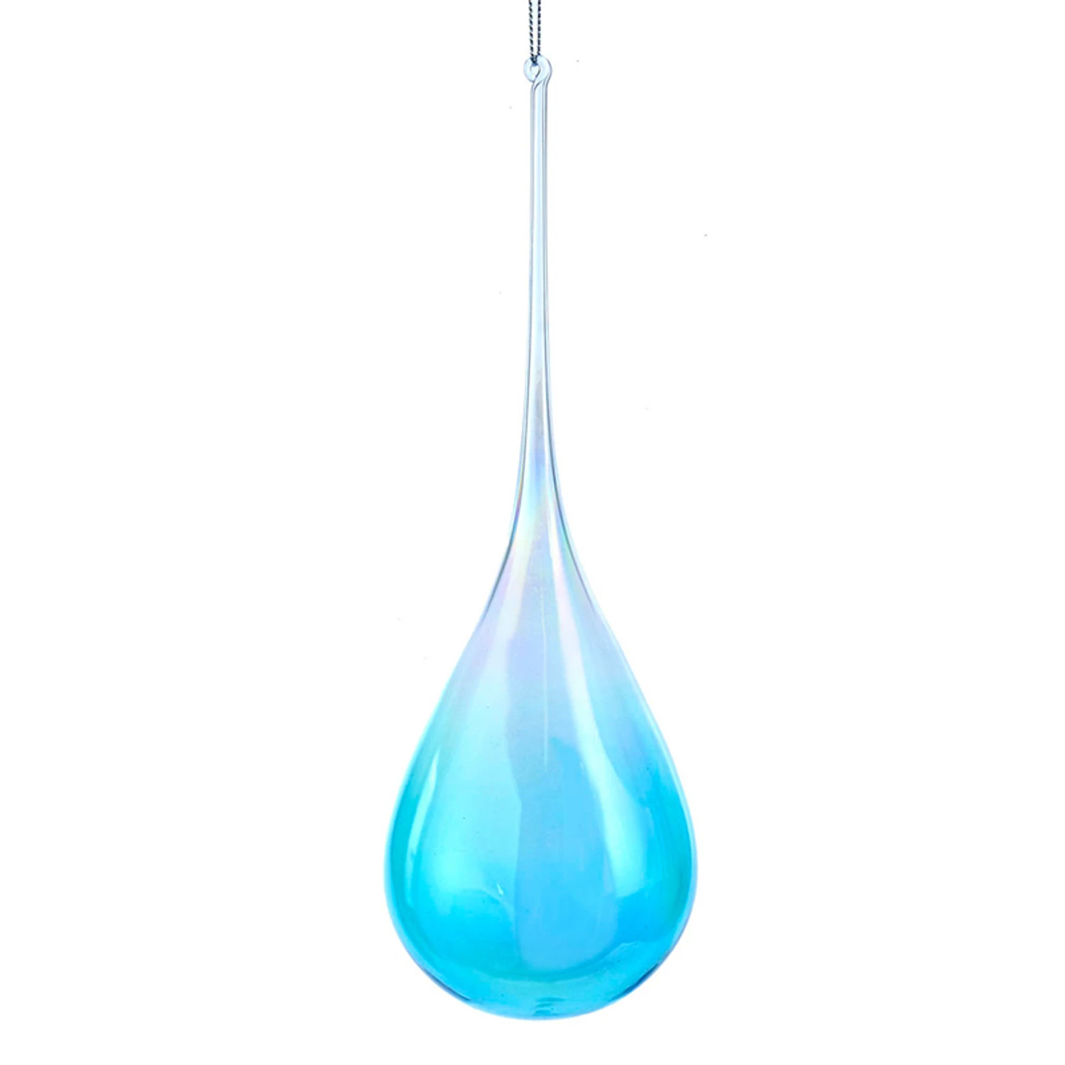 Brighten up your tree with these stunning blue drop ornaments! They resemble a fresh fallen rain drop or the bright blue of the ocean! Each sold individually. Made by Kurt Adler. Made of glass. Dimensions: 5″. Item #: D3554