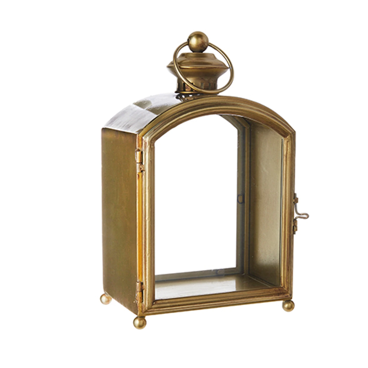 Imagine this gorgeous lantern sitting on your mantle with a flameless candle inside! The lantern is a stunning gold with a large glass door! Made by Raz Imports. Made of metal and glass. Dimensions: 12.5″ tall. Item #: 4228003