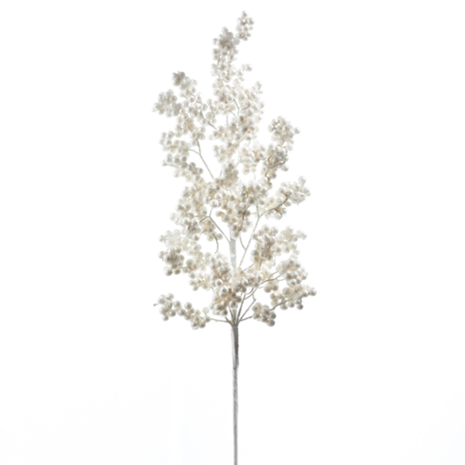 This stunning spray features a white branch dotted with white berries and dusted in glitter! Made by Raz Imports. Made of foam and plastic. Dimensions: 32″. Item #: F4302392