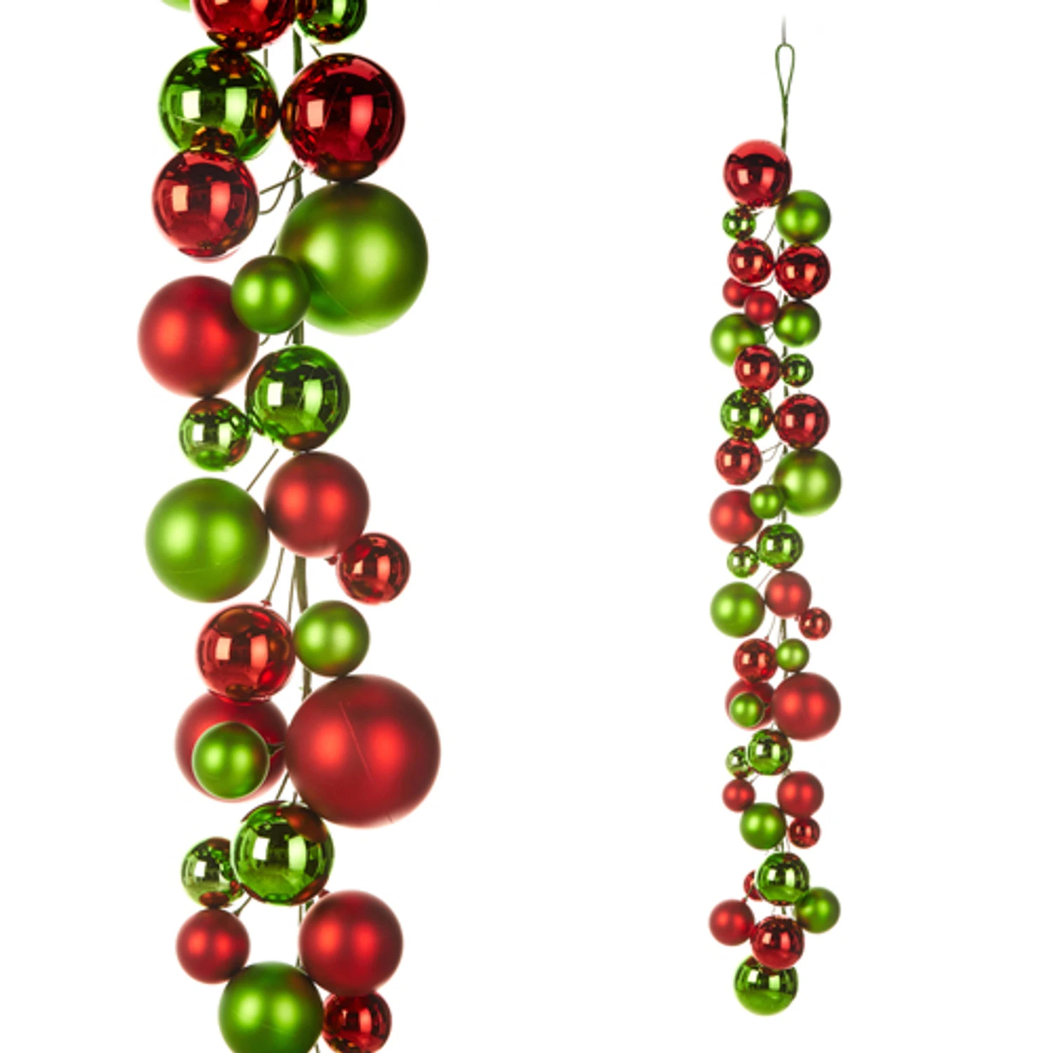 Add this gorgeous garland to your Christmas tree or mantle for a fun look! It features bright red and lime green ball ornaments of different sizes! Made by Raz Imports. Made of plastic. Dimensions: 4′. Item #: G4332724